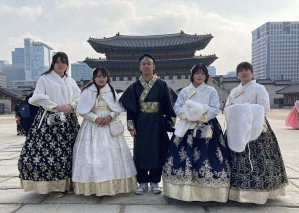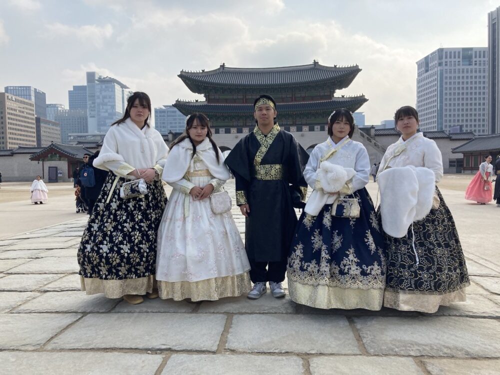 令和8年2月10日から2月13日までの4日間、本学学生5名が学術交流協定校である崇義(スンイ)女子大学校を訪問し、同校学生との交流を深めるとともに、韓国語や食文化、K-POPダンス、韓服試着などの文化体験を行いました。